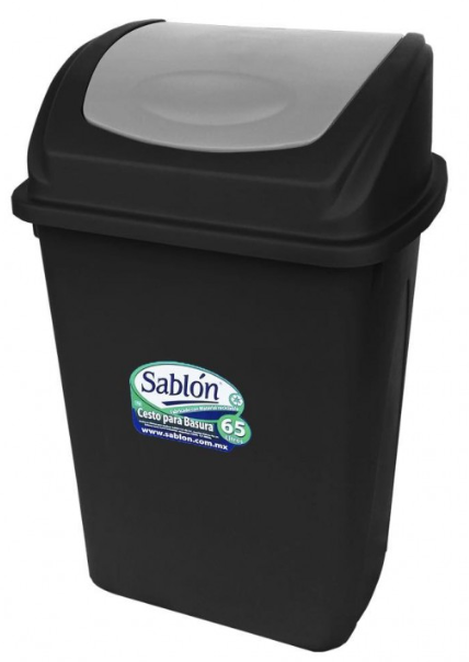 CESTO 65 LITROS NEGRO CON TAPA BALANCIN FRONTAL GRIS (8154GR) » SABLON «
